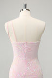 Sparkly Bodycon Royal Blue One Shoulder Sequins Homecoming Dress with Embroidery