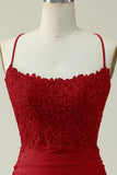 Sheath Spaghetti Straps Dark Red Short Homecoming Dress with Appliques