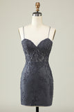 Spaghetti Straps Grey Bodycon Homecoming Dress with Appliques