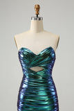 Sparkly Teal Blue Bodycon Sweetheart Ruched Short Homecoming Dress
