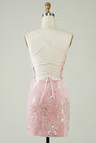 Velvet Sequins Pink Tight Homecoming Dress with Hollow-out