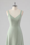 Chiffon V-Neck Sage Green A Line Bridesmaid Dress with Slit