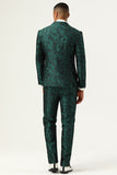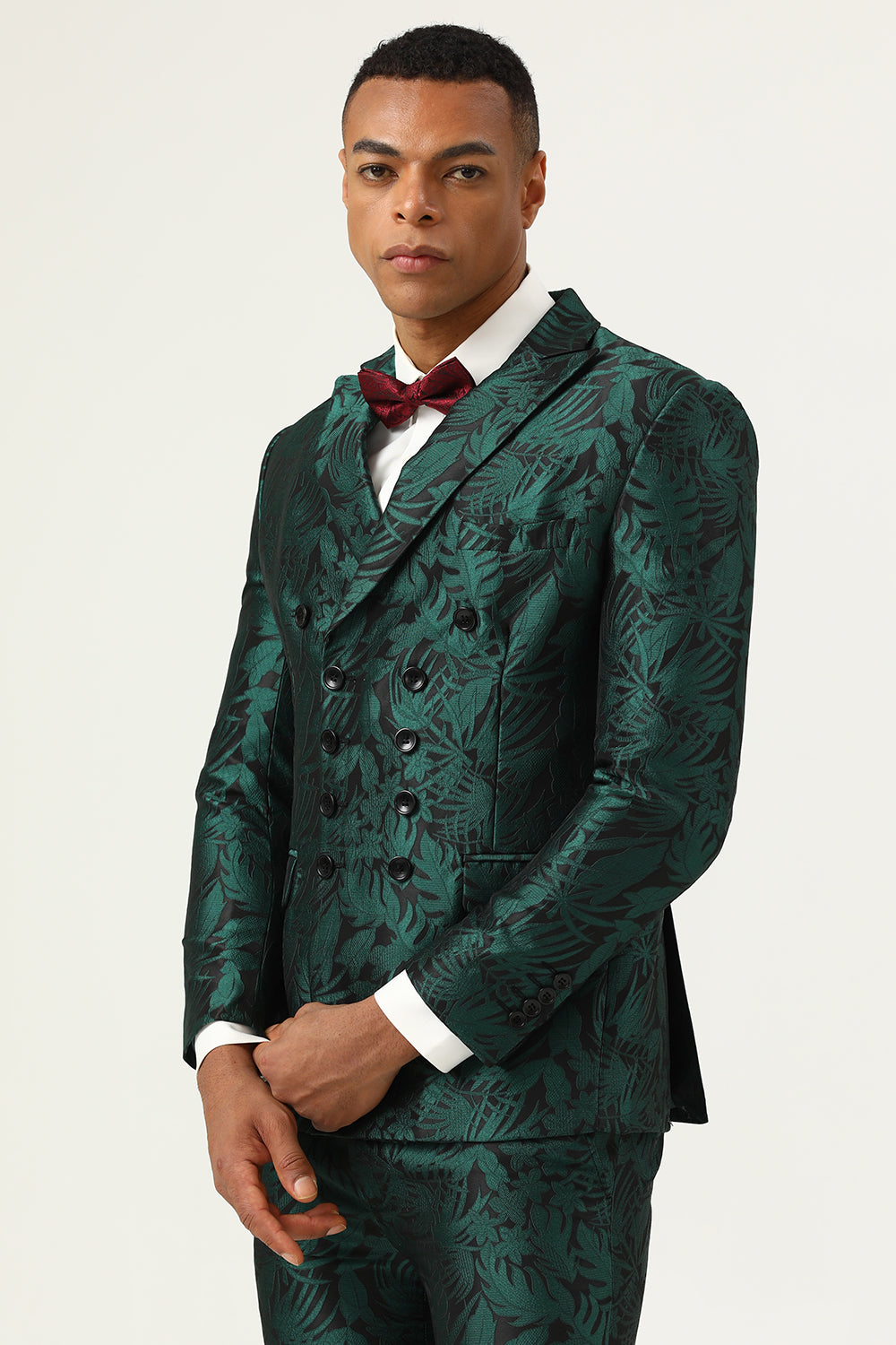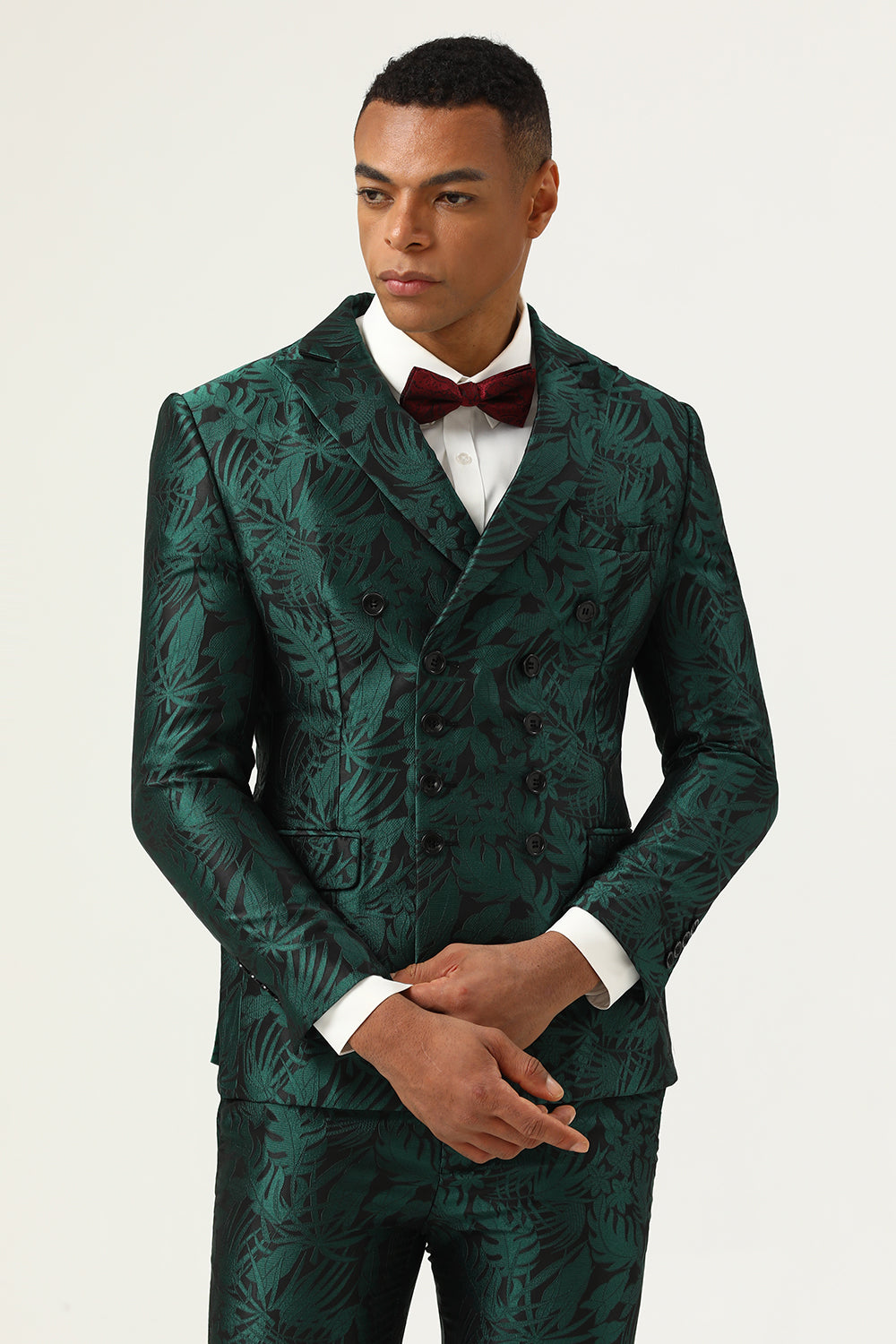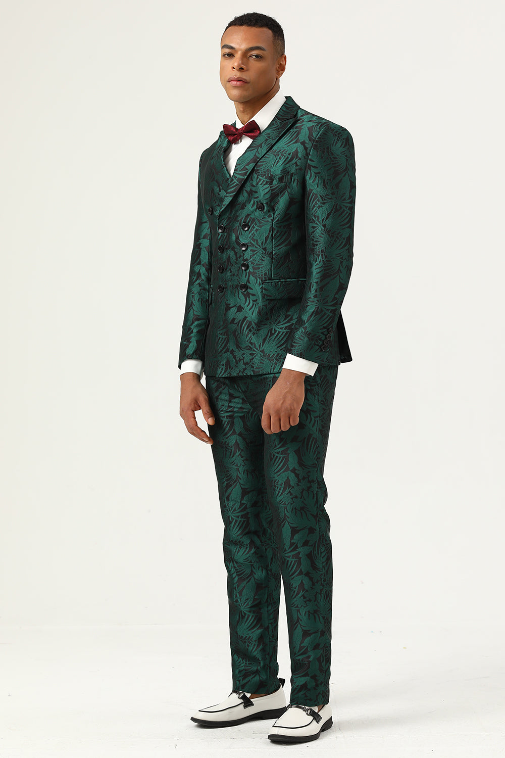 Green Jacquard Double Breasted 2 Piece Men's Suits