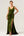Olive V Neck Satin Sheath Wedding Guest Dress with Ruffles