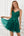 Green Spaghetti Straps Printed Summer Dress With Slit