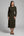 Dark Olive Satin Boat Neck Pencil Midi Work Dress With Sleeves