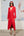 Red V-Neck Sheath Long Sleeve Midi Work Dress