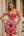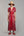 Red Printed Satin V Neck Sheath Wedding Guest Dress