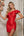Red Sheath Cowl Neck Midi Wedding Guest Dress
