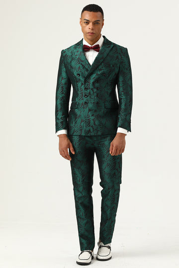 Green Jacquard Double Breasted 2 Piece Men's Suits