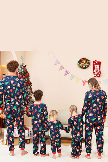 Navy Christmas Pattern Printed Family Pajamas Set