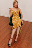 Yellow Mermaid Spaghetti Straps White Polka Dots Dress