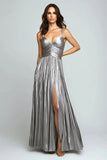 Grey Mermaid Beaded Corset Tiered Pleated Long Prom Dress with Slit