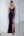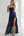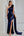 Navy Satin Square Neck Sheath Long Prom Dress with Slit