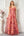 Pink and Navy Satin V-Neck A Line Long Formal Dress with Sleeves