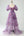 Purple A Line Print Lace-Up Long Prom Dress With Puff Sleeves