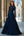 Navy Sheath Corset Spaghetti Straps Long Formal Dress with Lace