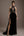 Terracotta Ruffled Satin Cold Shoulder Long Black Tie Dress with Slit