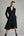 Black Satin Notched Lapel Buttons Long Sleeves Midi Work Dress with Belt