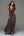 Dark Brown White Dot V-Neck Bodycon Formal Dress with Slit