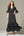 Black White Dot Ruffled A Line Long Formal Dress with Sleeves