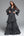 Black White Dot A Line V-Neck Long Formal Dress with Ruffles