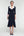 Navy Satin Notched Lapel Pencil Midi Work Blazer Dress with Sleeves