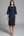Navy Satin Midi Bodycon Work Dress with Sleeves
