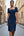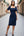Navy Bodycon Square Neck Midi Work Dress with Short Sleeves