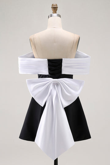 Black A-Line Off The Shoulder Short Homecoming Dress with Bow