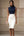 Ivory and Black Bodycon Satin Tea-Length Work Dress with Slit