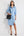 Blue V-Neck A Line Work Dress with Long Sleeves