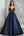 Glitter Navy A-Line Spaghetti Straps Satin Ball Gown Dress with Appliques