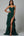 Sparkly Dark Green A-Line Spaghetti Straps Satin Beaded Long Prom Dress with Slit