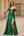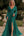 V-Neck Dark Green A Line Ruffled Long Formal Dress