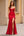 Strapless Lace Red Satin Sheath Prom Dress with Slit