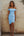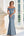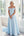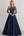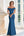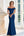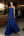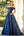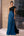 Blue Pleated Deeep V-Neck Gala Dress with Long Sleeves