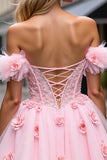 Floral Corset Blush Tulle Short Homecoming Dress with Appliques