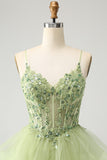 Light Green A-Line Tulle Tiered Homecoming Dress with Appliques