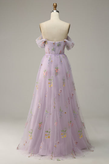 Lavender A Line Tulle Off Shoulder Prom Dress