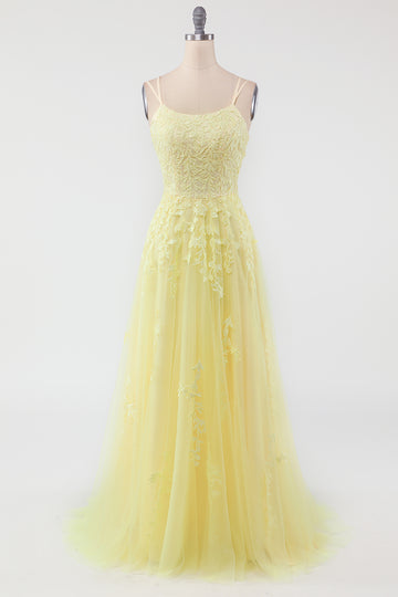 Yellow Spaghetti Straps Prom Dress