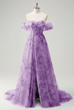 Floral A Line Off The Shoulder Corset Long Green Prom Dress