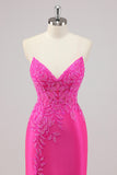 Fuchsia Mermaid Strapless Long Beaded Prom Dress With Appliques