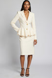 Ivory Pleated Satin Short Work Dress with Ruffles