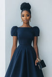 Navy A Line Short Sleeves Midi Work Dress