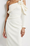 One Shoulder White Bodycon Work Dress With 3D Flower