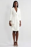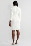 White Notched Lapel Sheath Work Dress with Long Sleeves