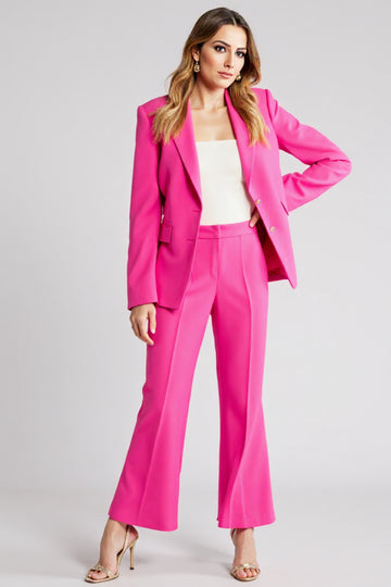Hot Pink 2 Piece Peak Lapel Single Button Work Suit