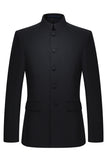2 Piece Single Breasted Black Slim Fit Men's Mandarin Collar Suit