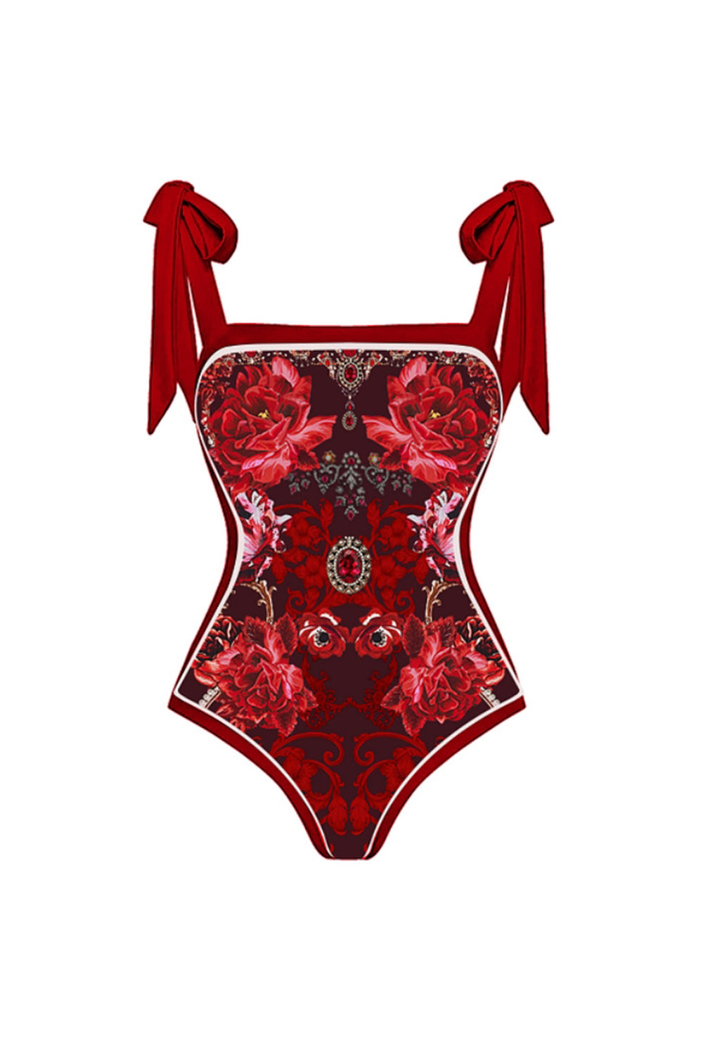 Home2 Piece Spaghetti Straps Black Red Floral Swimsuit with Cover Up